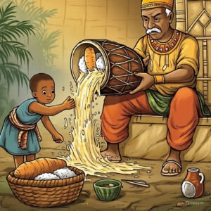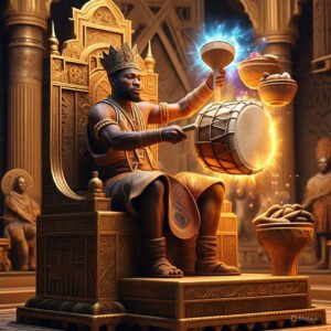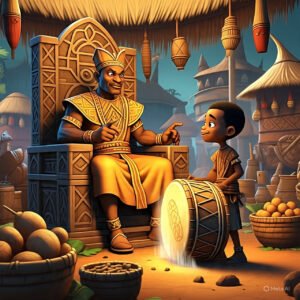 Long ago, in a kingdom where prosperity depended on more than just hard work, there was a king who owned a remarkable magic drum. This drum was unlike any other—it had the power to summon food and drink whenever its owner beat its surface. During famines, the king would gently play the drum, and baskets of yams, bowls of soup, and jugs of palm wine would appear, feeding his people and keeping their spirits high.